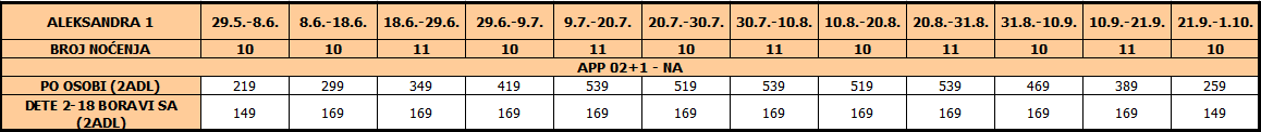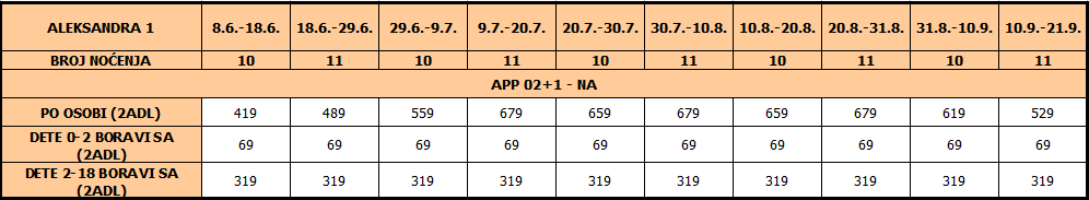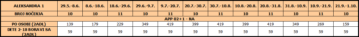 I dete 2 – 14 god plaća cenu iz tabele, u pratnji 2 punoplatežne osobe po ceni APP 02 i koriste PL ili zajednički ležaj sa punoplatežnom osobom u APP02.