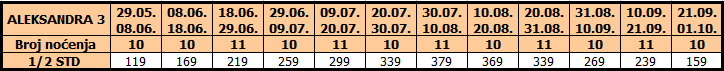 Polazak autobusa je dan ranije u odnosu na datum iz tabele.