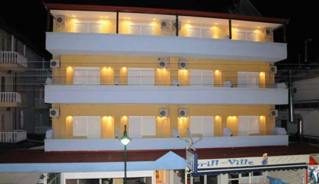 Dvospratna vila 80 metara od plaže, prva ulica od šetališta, standardno opremljeni studiji, mini kuhinja sa osnovnim posuđem, TV, AC uz doplatu na licu mesta, promena posteljine na pola smene. Za vreme boravka u studijima gosti sami održavaju higijenu studija. Kreveti su grčki standard (nešto uži). Kapacitet agencije je na drugom spratu. Vila nema lift.