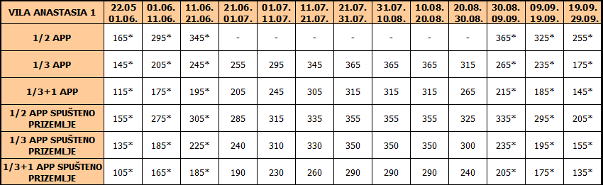 – Turističku taksu: 2€ po sobi dnevno (plaća se na licu mesta, direktno vlasniku i podložna je promeni)
