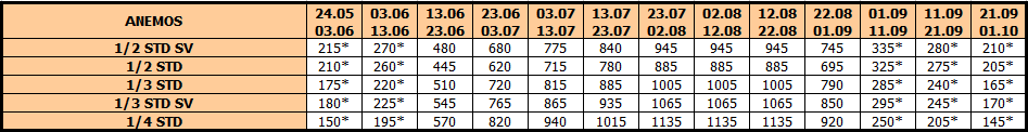 U smenama sa zvezdicom *, u slučaju sopstvenog prevoza cena paket aranžmana se umanjuje za 25€ po osobi.