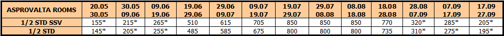 *Cene označene zvezdicom * su cene paket aranžmana u VANSEZONI (uračunat smeštaj i autobuski prevoz iz Niša, bez teritorijalne doplate za prevoz) po osobi.* Teritorijalna doplata za autobuski prevoz severno od Niša: Beograd – 10 evra, Novi Sad – 20 evra