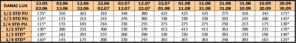 – U slučaju spajanju smena, cena se umanjuje za 30€ po osobi na ukupnu cenu paket aranžmana, osim u smenama označenim zvezdicom.