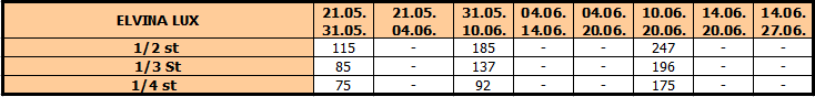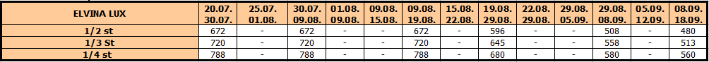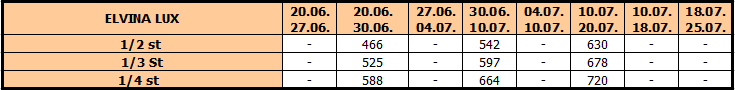-Kod prodaje duple smene – prva smena gde je cena sa zvezdicom (*) i narednog termina, putnik plaća paket po osobi plus najam apartmana u sledećoj smeni. Isto važi i za poslednju smenu sa zvezdicom (*).
