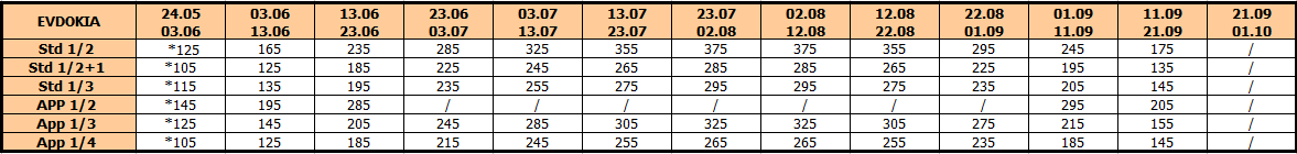 Cene su izražene u evrima po studiju / apartmanu, najam za 10 noćenja