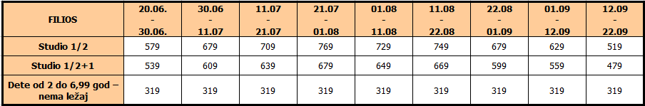 Cene u tabeli su izražene po osobi, na bazi 10 noćenja.
