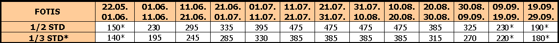 – U slučaju spajanja smena cena aranžmana se umanjuje za 50€ po plativoj osobi (osim kod smena označenih zvezdicom);