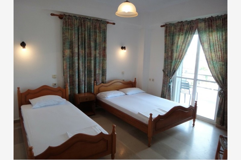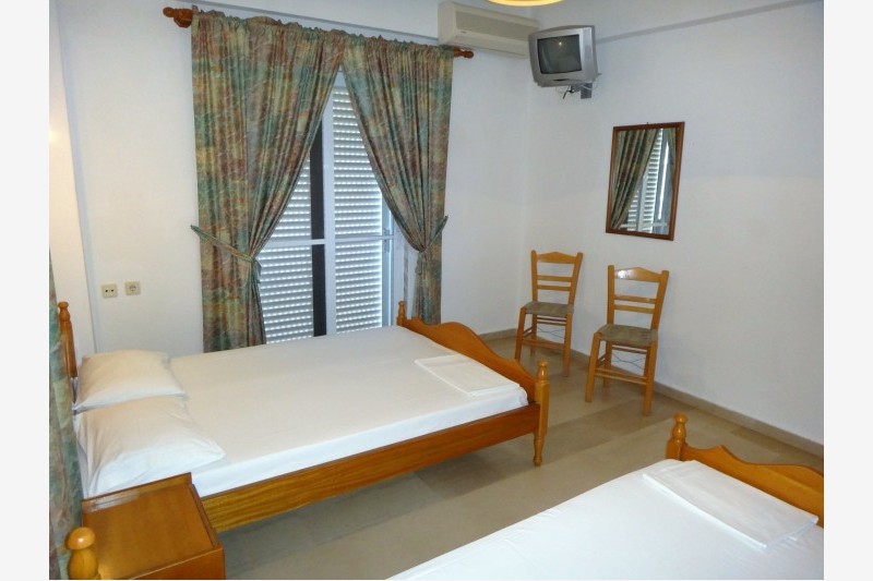 Vila Gouzelis se nalazi na oko 230 metara udaljenosti od plaže u mirnom delu Nei Porija a u blizini naše vile Twins rooms. Raspolaže dvokrevetnim i trokrevetnim studijima, kao i četvorokrevetnim, petokrevetnim i šestokrevetnim dupleks apartmanima. Svaka smeštajna jedinica poseduje osnovno opremljenu kuhinju, kupatilo, Tv i klima uređaj čije se korišćenje dodatno naplaćuje (7 eur po danu u studiju a 12 eur u dupleks apartmanima jer poseduju dva klima uređaja). Promena posteljine je jedanput u toku boravka, a u objektu postoji i mogućnost korišćenja WiFi interneta. U prizemlju vile postoji prostor sa garniturama za sedenje i toalet koje putnici mogu koristiti poslednjeg dana boravka.