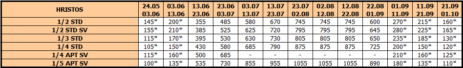 Cene su izražene u evrima po najmu studija/apartmana za 10 noćenja