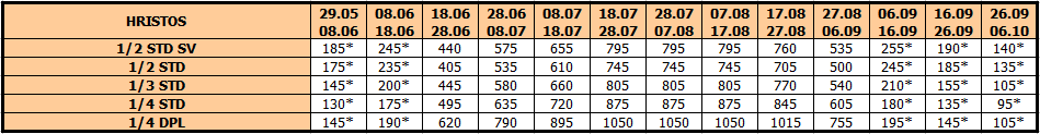 U smenama sa zvezdicom *, u slučaju sopstvenog prevoza cena paket aranžmana se umanjuje za 25€ po osobi.