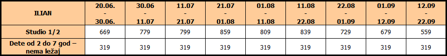 NAPOMENA: dete ne ostvaruje popust ukoliko koristi sopstveni ležaj