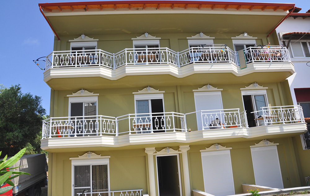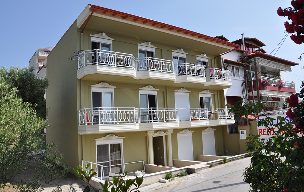 Opis: Vila Irina je novoizgrađeni objekat za sezonu 2015. Poseduje studije za smeštaj od 2-4 osobe u nivou prizemlja, prvog ili drugog sprata. Većina studija ima pogled na more. Sve smeštajne jedinice poseduju TV, kupatilo, klima uređaj (uz doplatu na licu mesta 5 € dnevno), opremljen kuhinjski deo i terasu. Preporuka za sve kategorije turista.