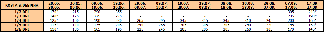 Smene od 21.06. do 30.08.2026. su po APP/DPLX – 10 noćenja