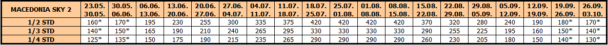 – termini označeni * nemaju umanjenje za sopstveni prevoz