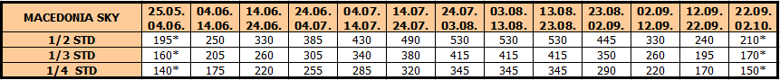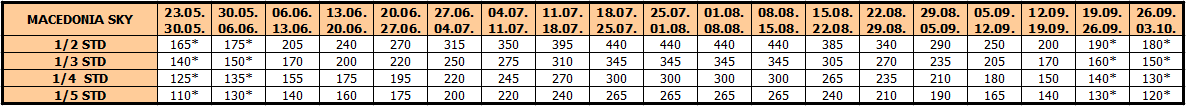 – termini označeni * nemaju umanjenje za sopstveni prevoz