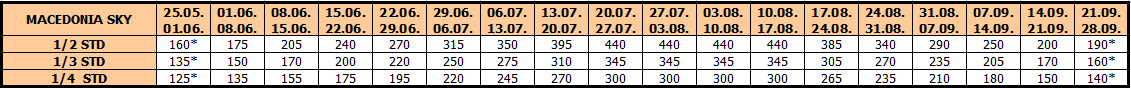 CENOVNIK LETO 2026. – 7 NOĆENJA