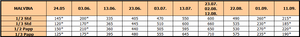 U smenama sa zvezdicom *, u slučaju sopstvenog prevoza cena paket aranžmana se umanjuje za 30€ po osobi.