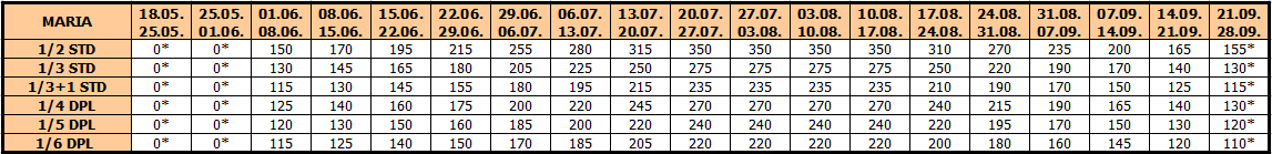 – termini označeni * nemaju umanjenje za sopstveni prevoz