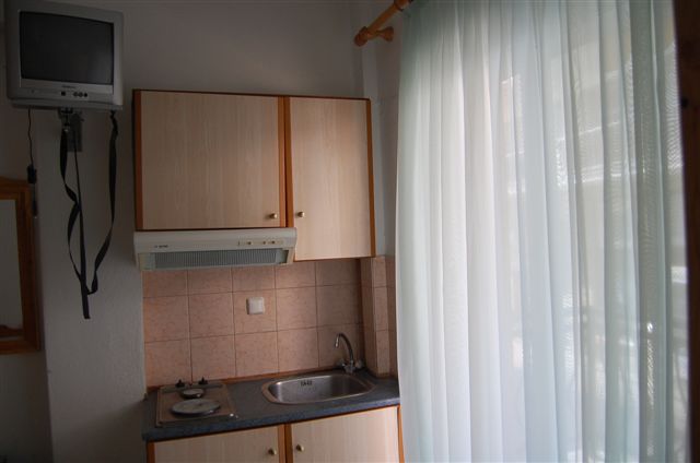 Vila se nalazi na 200 metara od centra i 30 metara od plaže. Vila Maria se nalazi na 200 metara od centra i na plaži je. U blizini su pekara i prodavnica. Poseduje dvokrevetna i trokrevetna studija. Treći ležaj je fotelja na rasklapanje u kojoj može spavati odrasla osoba. Svaki studio delimično gleda na more i poseduje kompletno opremljenu čajnu kuhinju, kupatilo (tuš/WC), TV i balkon, kao i klima uređaj koji se doplaćuje na licu mesta (5€ dnevno po smeštajnoj jedinici) dok je Wi-Fi internet konekcija besplatna. Doplata za korišćenje klima uređaja nije obavezna. Vila ima peškire.