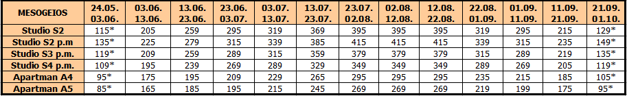 Cene su izražene u evrima po osobi na bazi paket aranžmana (prevoz + smeštaj) za 10 noćenja