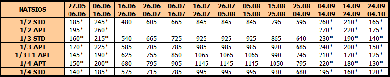 U smenama sa zvezdicom *, u slučaju sopstvenog prevoza cena paket aranžmana se umanjuje za 25€ po osobi.