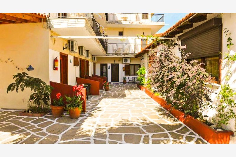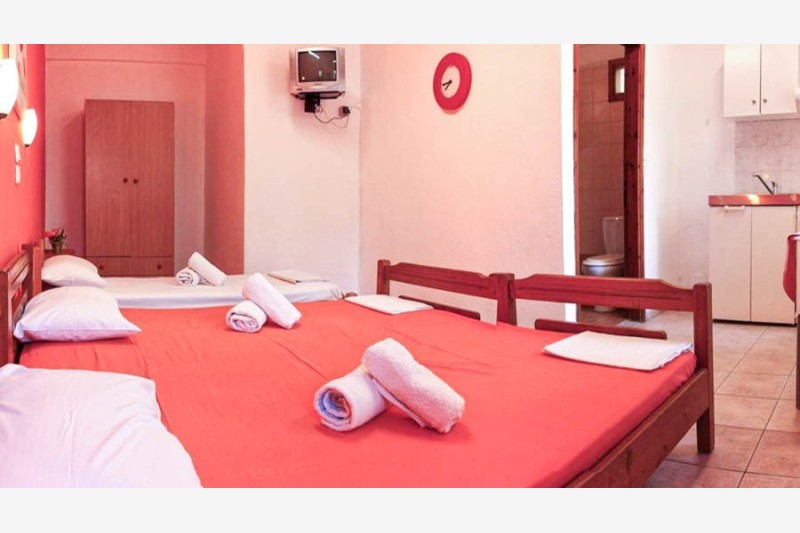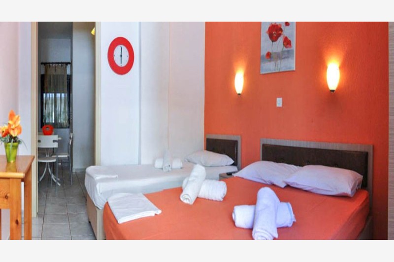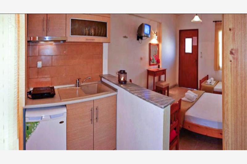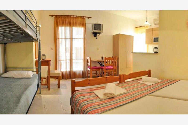 Vila Natsios se nalazi na oko 120 metara udaljenosti od plaže, u centralnom delu Haniotija. U ponudi ovog objekta su dvokrevetni, trokrevetni i četvorokrevetni studiji kao i trokrevetni, 1/3+1 i četvorokrevetni apartmani koji se nalaze u prizemlju, na prvom I drugom spratu. Studiji i apartmani poseduju osnovno opremljenu kuhinju, kupatilo, terasu i TV. Korišćenje klima uređaja je uključeno u cenu najma apartmana. Studiji i apartmani koji imaju prolaznu terasu (manjak privatnosti) označeni su kao Economy i iste su opremljenosti kao ostale smeštajne jedinice. Tokom boravka gosti sami vode računa o higijeni apartmana dok je promena posteljine na polovini boravka. U vili postoji i mogućnost korišćenja WiFi interneta.