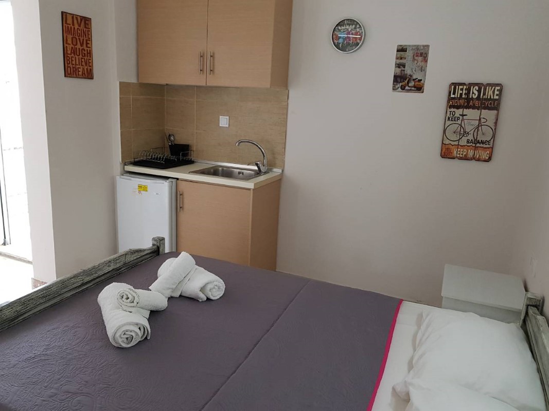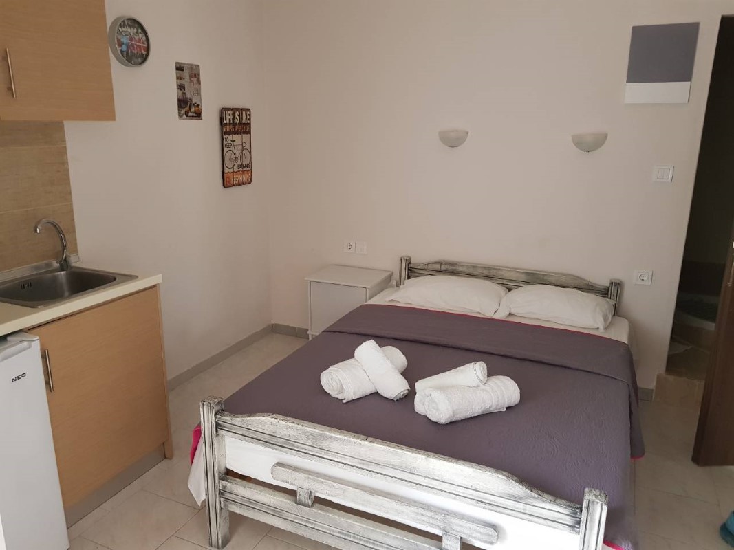 1/2+1 studio – u jednoj prostoriji se nalazi čajna kuhinja i jedan bračni ležaj i fotelja na razvlačenje.