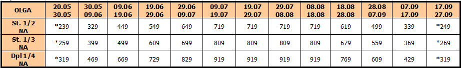 /osim za smene označene zvezdicom /.