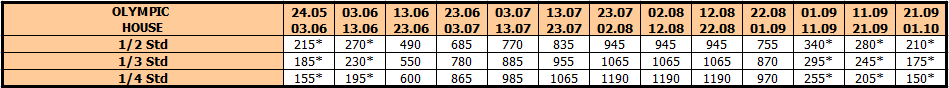 U smenama sa zvezdicom *, u slučaju sopstvenog prevoza cena paket aranžmana se umanjuje za 25€ po osobi.