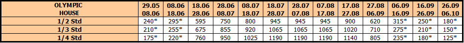 *Cene označene zvezdicom * su cene paket aranžmana u VANSEZONI (uračunat smeštaj i autobuski prevoz iz Niša, bez teritorijalne doplate za prevoz) po osobi.* Teritorijalna doplata za autobuski prevoz severno od Niša: Beograd – 10 evra, Novi Sad – 20 evra
