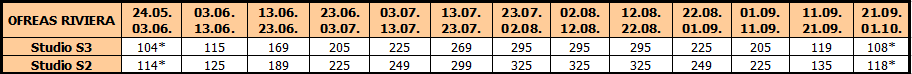 Cene su izražene na bazi najma po studiju/apartmanu za 6/7/8/10 noćenja