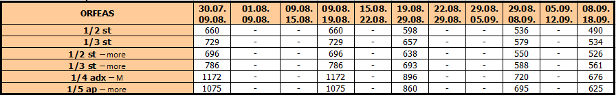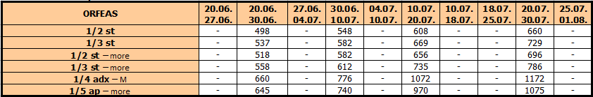Cene su izražene u evrima po osobi na bazi paket aranžmana (prevoz + smeštaj) za 10 noćenja