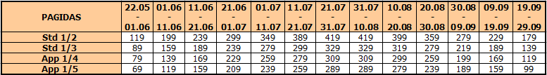Cene su izražene u evrima po osobi, najam za 10 noćenja