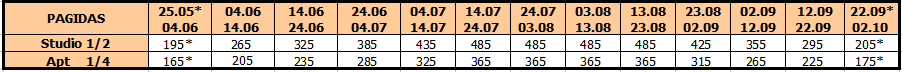 Cene su izražene u evrima po app/studiju, najam za 10 noćenja