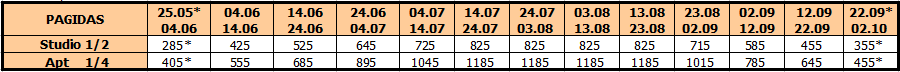 Cene su izražene u evrima po osobi na bazi paket aranžmana (prevoz + smeštaj) za 10 noćenja