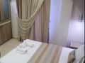 PETOKREVETNI APARTMAN: je izdvojen, nalazi se sa zadnje strane kuće u visokom prizemlju i ima zaseban ulaz (7-8 stepenika od zemlje) i upravo zbog toga pruža osećaj privatnosti. Sastoji se od spavaće sobe u kojoj se nalaze jedan standardni i jedan francuski ležaj, ormar, noćni stočić sa ogledalom, TV/KAT, klima uređaj i dnevnog boravka u kome se nalazi jedan francuski ležaj ili ugaona garniture na razvlačenje, ormar, kao i kuhinja koja je u potpunosti opremljena posuđem za pet osoba, aspiratorom, šporetom sa dve ringle i frižiderom. Svaki putnik dobija po jedan mali i jedan veliki peškir. Kupatilo je sa tuš kabinom, fenom za kosu. Apartman poseduje terasu sa stolom i pet stolica.