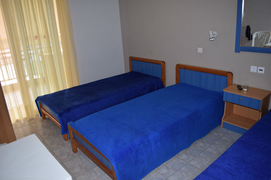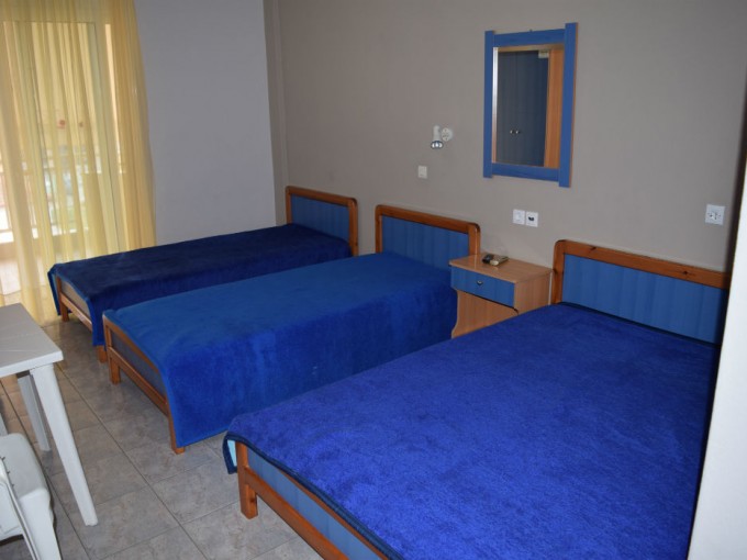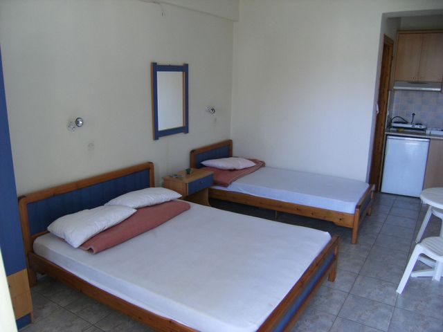 Nalazi se preko puta škole, na oko 250 m od plaže u mirnom delu Stavrosa. Vila raspolaže sa dvokrevetnim, trokrevetnim i četvorokrevetnim studijima u prizemlju, na I i II spratu. Svaki studijo ima kuhinju, opremljenu sa posuđem za predviđen broj osoba, kupatilo, terasu. Usluga je na bazi najma. Korišćenje klima uređaja uključeno u cenu aranžmana.