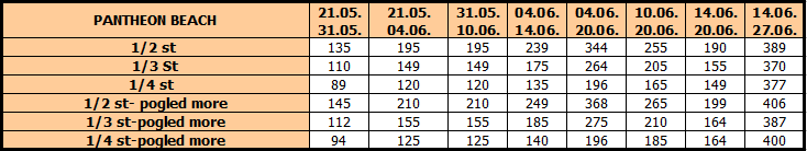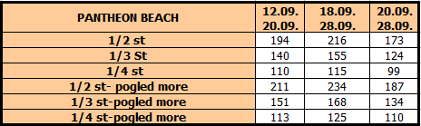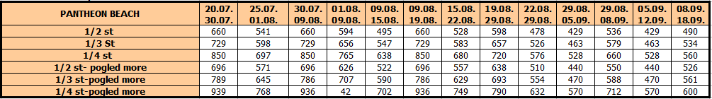 Cene su izražene u eurima po studiju/apartmanu na bazi najma za 10 noćenja