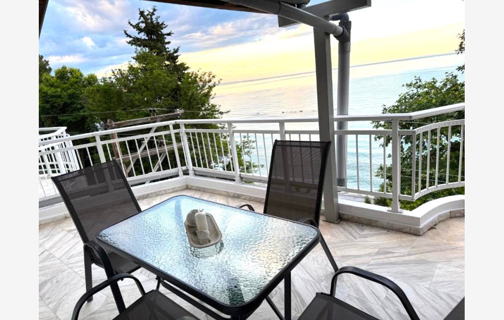 Vila Paris Sea View je smeštena na izlazu iz Platamona ka tvrđavi i na oko 40 metara udaljenosti od prilično široke šljunkovite plaže. U ponudi su dvokrevetni i trokrevetni studiji kao i četvorokrevetni apartmani koji su smešteni na poslednjem spratu. Apartmani su u potpunosti renovirani i imaju direktan pogled na more (SV). Studiji nisu renovirani i sa terase imaju bočni pogled na more (SSV). Terasa studija (privatna) nije u sklopu samog apartmana već se na nju izlazi iz hodnika objekta – par koraka od ulaza/izlaza u studio (poslednja fotografija u galeriji). Svaka smeštajna jedinica poseduje osnovno opremljenu kuhinju, kupatilo, terasu, TV i klima uređaj čije je korišćenje uključeno u cenu najma apartmana. Promena posteljine i peškira je na polovini boravka a u objektu postoji i mogućnost korišćenja WiFi interneta.