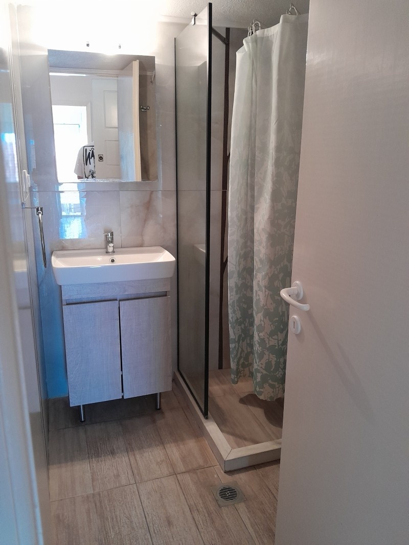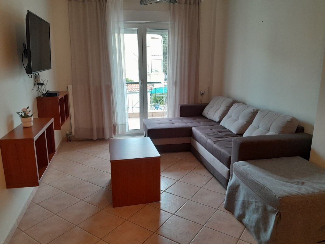 1/5 duplex – u dnevnom boravku kuhinja ugaona garnitura, u jednoj spavaćoj sobi bračni ležaj i u drugoj spavaćoj sobi bračni ležaj.
