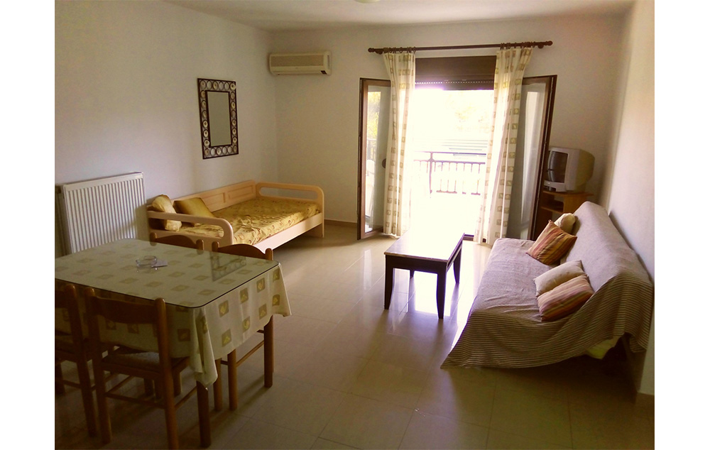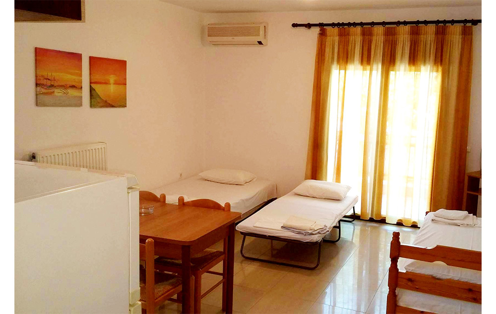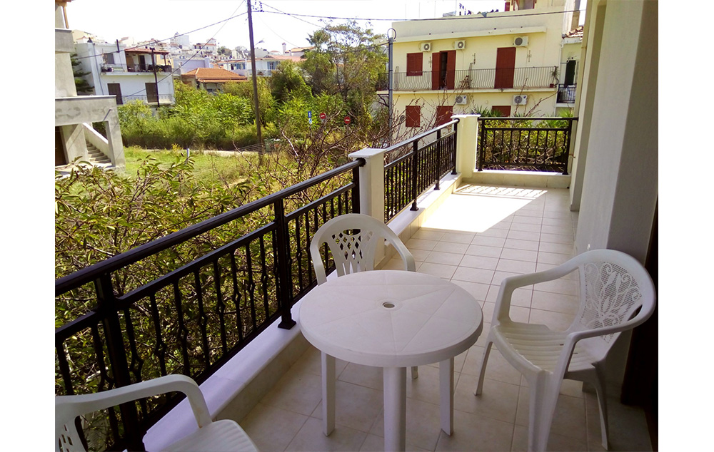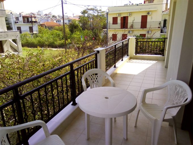 Vila Roula je novijeg datuma i nalazi u gradu Skiatosu, na oko 700 metara od strogog centra i oko 150 metara od najbliže autobuske stanice. Od najbliže plaže, Megali Amos, je nešto manje od oko 900 metara ili 2 autobuske stanice. Vila Roula je smeštena u lepom dvorištu sa zelenilom i cvećem. Dvokrevetni i trokrevetni studiji su na prizemlju, četvorokrevetni apartmani na prizemlju i prvom spratu, a prelepi četvorokrevetni+2 i petokrevetni+2 dupleks apartmani se nalaze na prvom spratu. Studiji sadrže opremljenu kuhinju, deo za spavanje s francuskim, odnosno tri standardna ležaja, kupatilo i lepe velike terase sa garniturom za sedenje u prirodnoj hladovini i zelenilu. Veličina studija je cca 20 – 23 kvm + terasa. Četvorokrevetni apartman se sastoji od sobe u kojoj je kuhinja i dva standardna ležaja, spavaće sobe sa dva standardna ležaja, kupatila i terase s garniturom za sedenje, odnosno dela dvorišta s garniturom za sedenje. Veličina apartmana je cca 30 kvm + terasa. Četvorokrevetni+2 i petokrevetni+2 dupleks apartmani se sastoje od dnevnog boravka s kuhinjom i trpezarijom u kojoj je klima uredjaj i TV, dve spavaće sobe sa po francuskim i dva standardna ležaja, kupatila i lepe, velike terase s garniturom za sedenje. Petokrevetni dupleks u dnevnoj sobi ima dodatni standardni ležaj i sofu na otvaranje na kojoj može da spava dvoje dece do 12 godina, (što ima i četvorokrevetni+2). Veličina apartmana je cca 45 kvm + terasa. Svi studiji i apartmani su opremljeni TV – om, wi – fi Internetom i klima uredjajem (uz doplatu na licu mesta (opcija), 8 eura dnevno po studiju/apartmanu). Vila Roula je B + kategorije, ima peškire i ima mogućnost sopstvenog parkinga. Najbliži mini market je udaljen oko 120 metara.