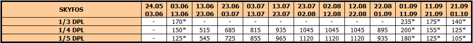 U smenama sa zvezdicom *, u slučaju sopstvenog prevoza cena paket aranžmana se umanjuje za 25€ po osobi.