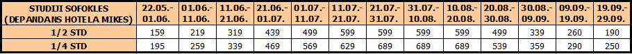 Cene su izražene po studiju/apartmanu na bazi najma za 10 noćenja – prevoz nije uključen u cenu