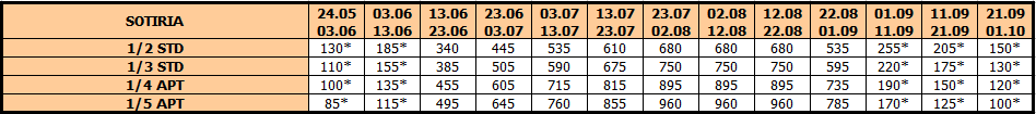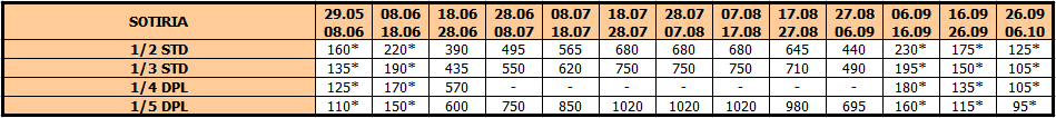 U smenama sa zvezdicom *, u slučaju sopstvenog prevoza cena paket aranžmana se umanjuje za 25€ po osobi.