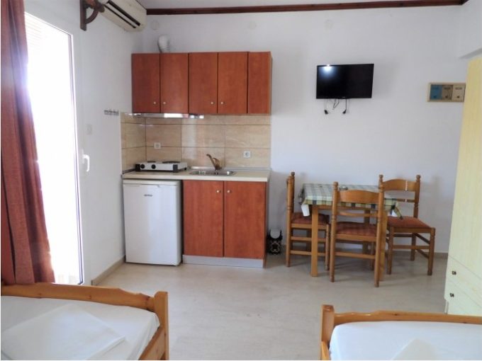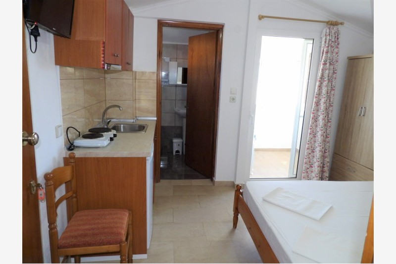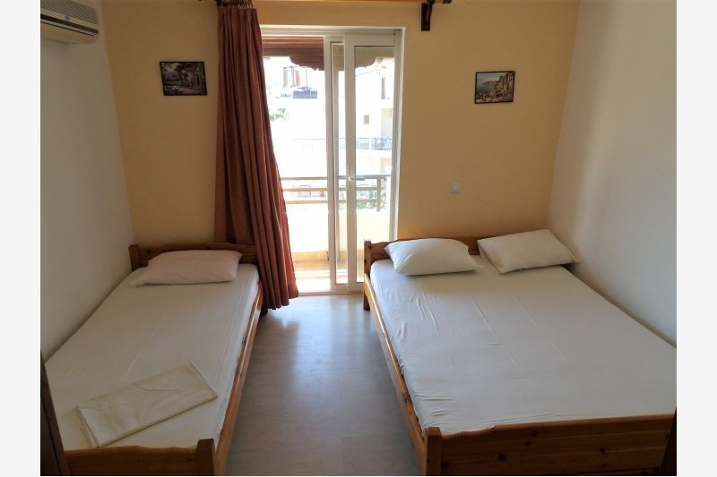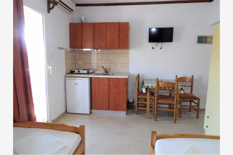 Vila Sotiria je smeštena na oko 160 metara udaljenosti od plaže i u blizini naše vile Twins rooms. U ponudi ovog objekta su dvokrevetni i trokrevetni studiji, kao i četvorokrevetni i petokrevetni apartmani i dupleks apartmani. Svi smeštajni kapaciteti se nalaze na poslednjem spratu. Svaki od apartmana poseduje osnovno opremljenu kuhinju, kupatilo, terasu, TV i klima uređaj čije se korišćenje dodatno naplaćuje. Tokom boravka gosti sami vode računa o higijeni apartmana dok je promena posteljine jedanput u toku boravka. U objektu postoji i mogućnost korišćenja WiFi interneta.