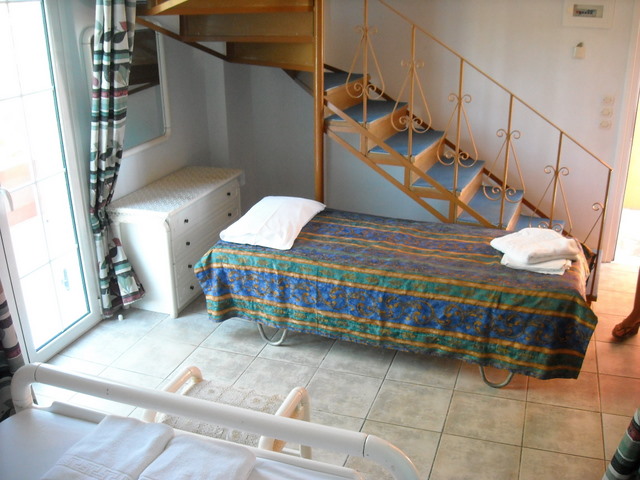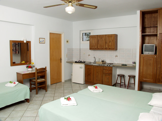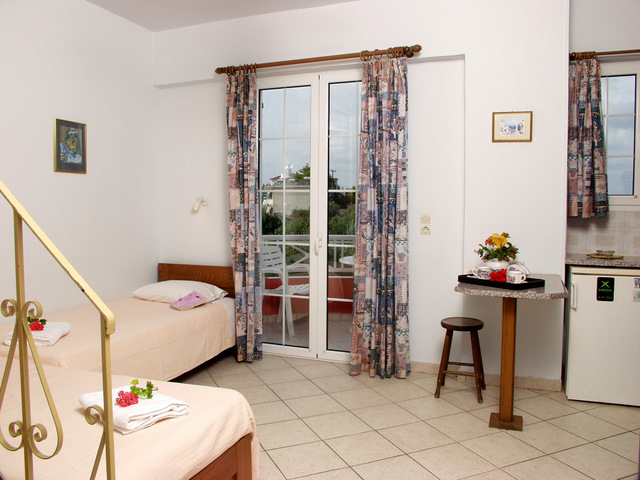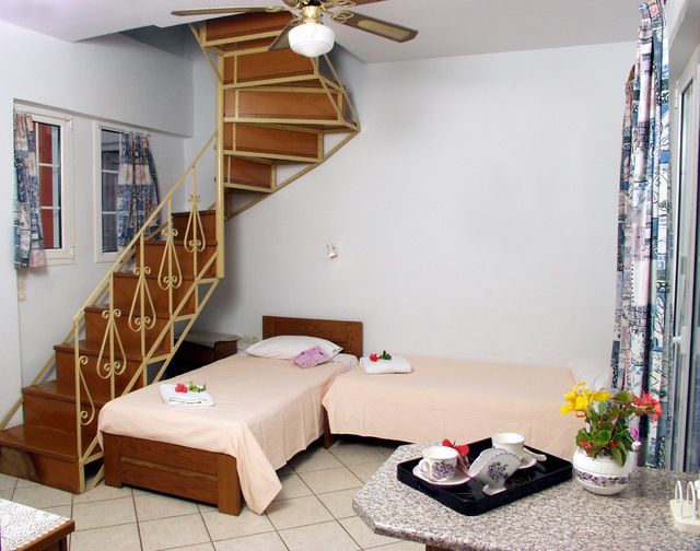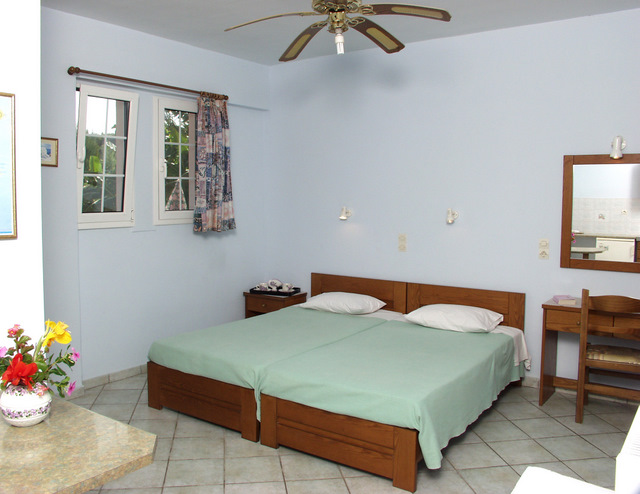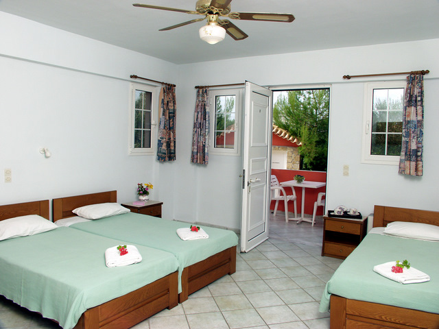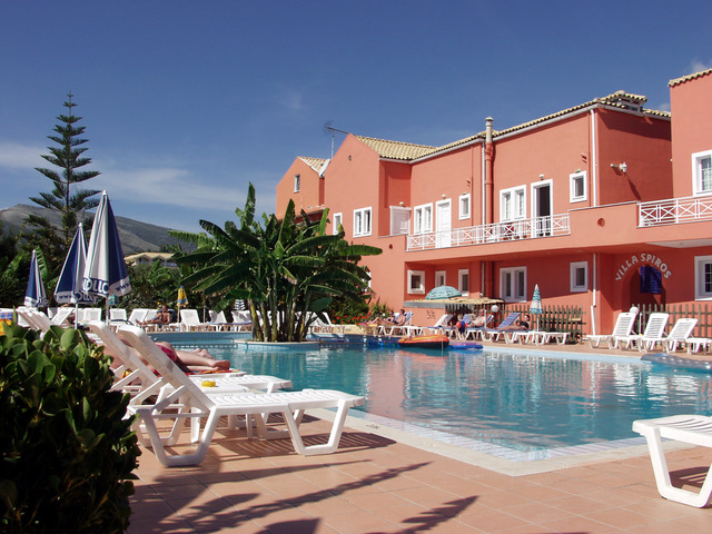 Vila Spiros se nalazi na par minuta hoda od glavne ulice koja predstavlja epicentar svih dešavanja u Laganasu i na 5 minuta hoda do peščane plaže. Vilu okružuje predivan vrt sa bujnom mediteranskom vegetacijom. U ponudi imamo deset apartmana različite strukture. Trokrevetne i četvorokrevetne studije, četvorokrevetne i petokrevetne mezonete, kao i šestokrevetne i petokrevetne duplekse. Prostrani trokrevetni i četvorokrevetni studiji nalaze se u visokom prizemlju. Mezoneti se sastoje od dnevne sobe koja se nalazi na prvom spratu i spavaće sobe u potkrovlju, sobe su povezane spiralnim stepeništem i svaka soba poseduje sopstveno kupatilo. Šestokrevetni dupleksi nalaze se u visokom prizemlju, poseduju prostranu dnevnu sobu i dve spavaće sobe. Sve smeštajne jedinice poseduju kompletno opremljenu kuhinju, frižider, mini električni šporet, posuđe, terasu, TV aparat, Wi-Fi, TWC, i klima uređaj čije korišćenje se doplaćuje 6 eura po danu. Iza same vile nalazi se bazen čije korišćenje nije omugućeno.