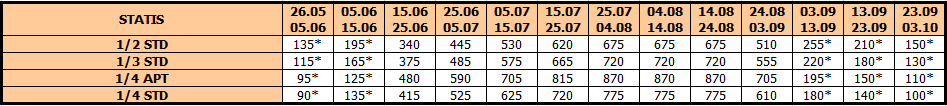 U smenama sa zvezdicom *, u slučaju sopstvenog prevoza cena paket aranžmana se umanjuje za 25€ po osobi.