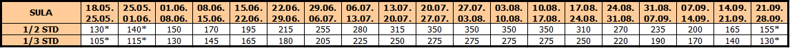 – termini označeni * nemaju umanjenje za sopstveni prevoz