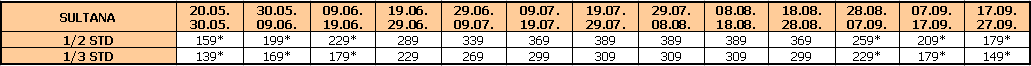 Za sopstveni prevoz cena aranžmana se umanjuje za 30€ po osobi, a 20€ za smene označene ZVEZDICOM (*)