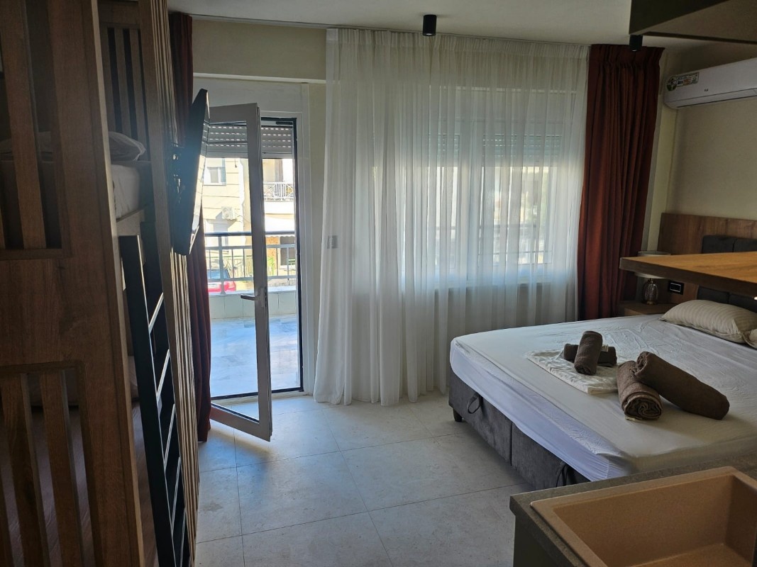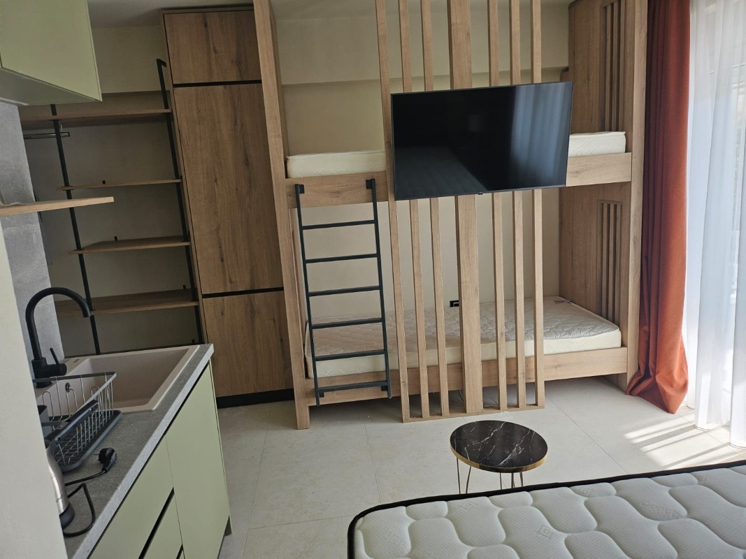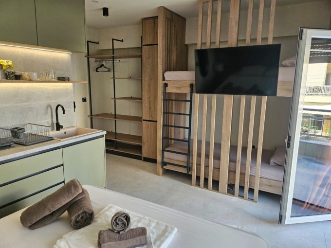 1/3+1* studio – u jednoj prostoriji čajna kuhinja, bračni ležaj i kreveti na sprat.